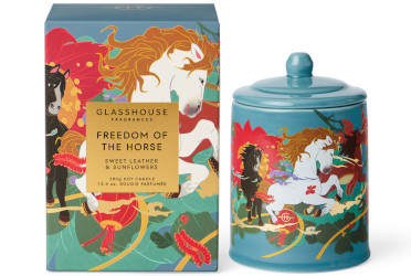 More Year of the Horse…from Glasshouse, the limited edition Freedom of the Horse candle: “This Lunar New Year, we celebrate the dynamic spirit of the Fire Horse; a symbol of independence, strength, and renewal. Our limited-edition fragrance, Freedom of the Horse, blends the mystical intensity of sweet leather and incense with the vitality of sunflowers and yellow rose.” 380g for $60 at Glasshouse, where you’ll also find a horse candle holder (shown below the jump) sold separately for $65.